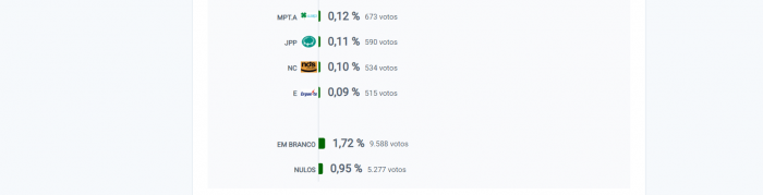 Por último a Iniciativa Liberal consegue 6,10% com 33.930 e elege 1 deputado.