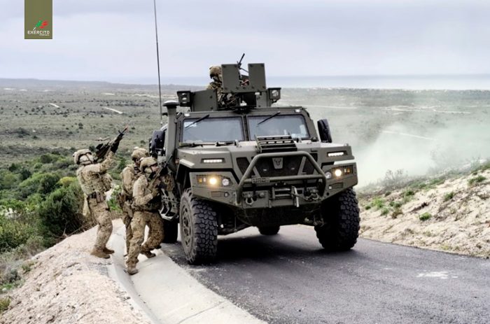 Militares do Batalhão de Comandos (BCmds) do Exército Português, no decurso do exercício multinacional “Viper Sword”, junto a uma Viatura Táctica Ligeira Blindada (VTLB) 4×4, URO VAMTAC ST5, simulando assalto ao Ponto da Crastinha, geo-referenciação 39.8311119335012, -8.970960494778057 , ref. https://maps.app.goo.gl/rcpAEQEUE3eA6AjF9 , na Marinha-Grande, Portugal, a 7 km da Base Aérea N.º 5 (em Monte Real) e a 2 Km da costa atlântica, em Novembro de 2023. A posição de ângulo elevado das suas armas visa cobrir a estrutura de torre, em cimento armado, com 15 metros de altura, com escada exterior em caracol, existente junto à Casa de Guarda do Ponto da Crastinha, que vigia o Pinhal de Leiria.
