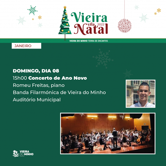 O Auditório Municipal de Vieira do Minho acolhe, este domingo, dia 8 de Janeiro o Concerto de Ano Novo, promovido pela Câmara Municipal no âmbito do programa festivo “ Vieira Vila Natal 2022”.