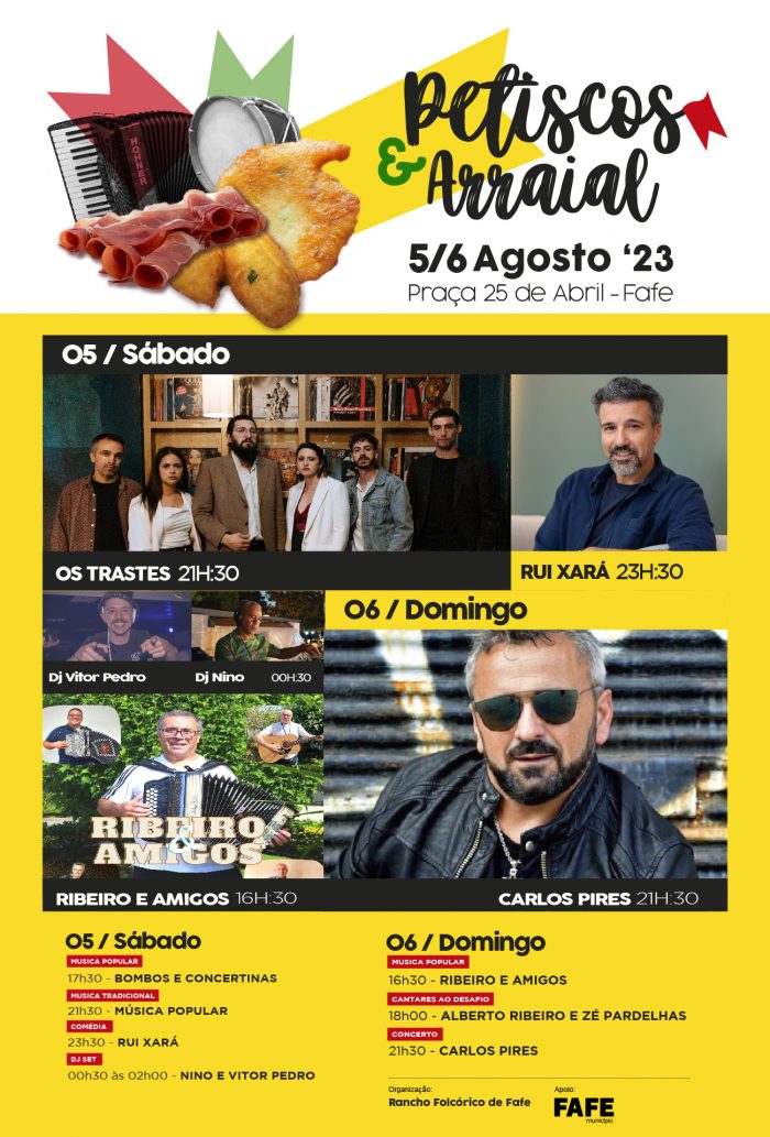 Entre tasquinhas, cantares ao desafio, concertinas e música tradicional, o Rancho Folclórico de Fafe programou a atuação do grupo «Os Trastes» e de Carlos Pires, o cantor fafense e autor do «Vira de Fafe» que é já um emblema para os fafenses.